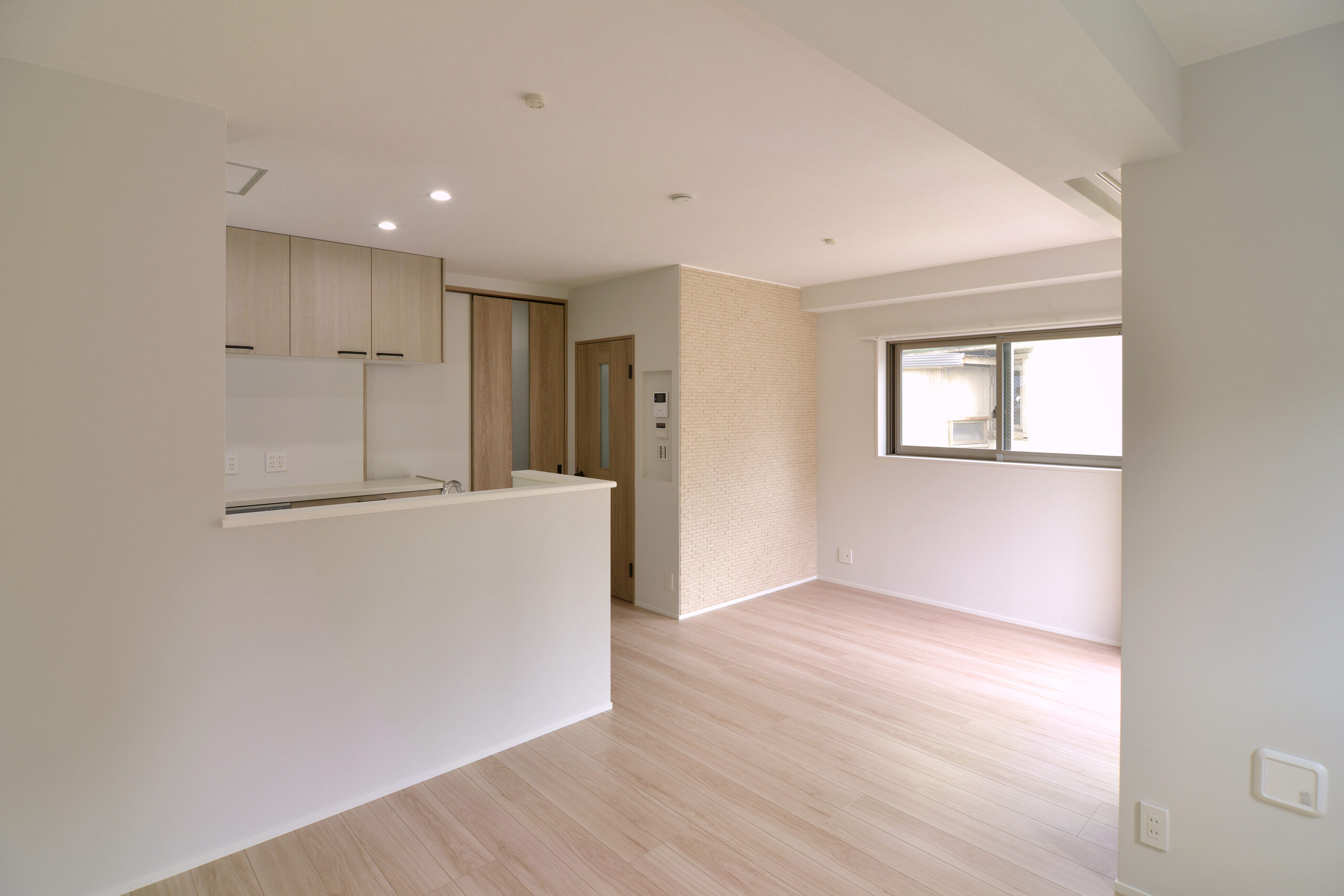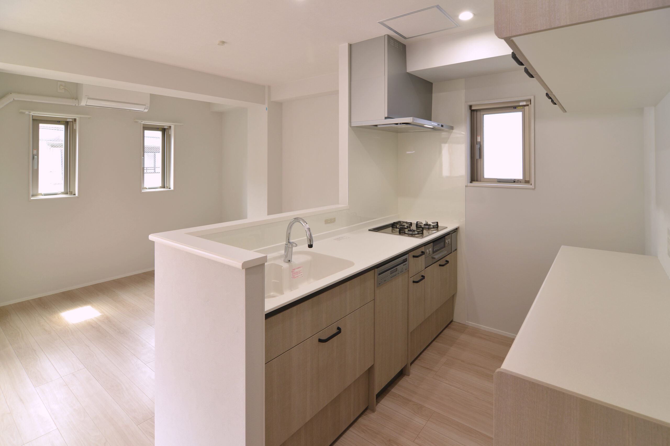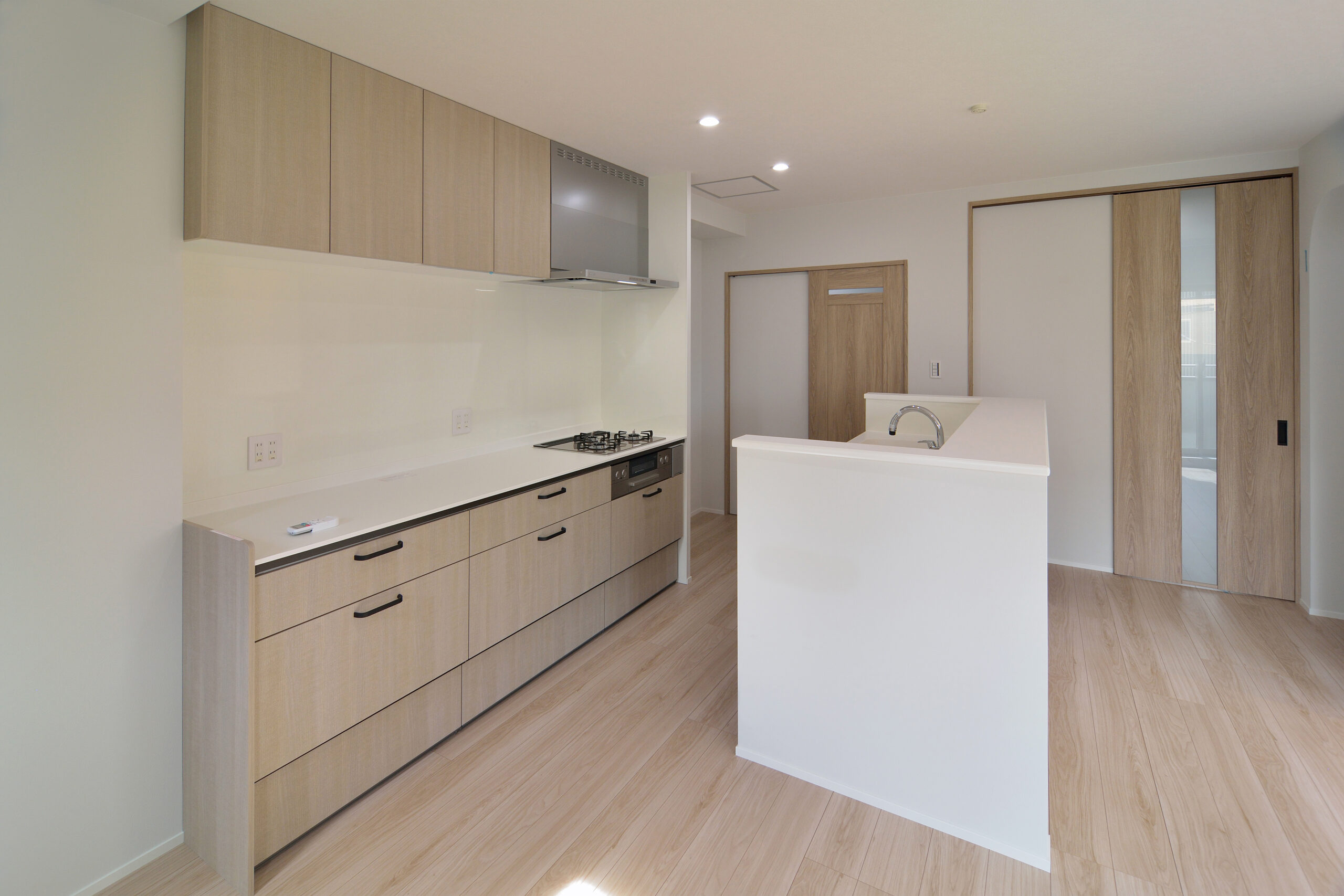 ご実家を事務所と二世帯住宅へ建替えました。 1階は会社事務所、2、3階を二世帯住宅となる共同住宅として設計し、それぞれの家族の生活スタイルに合った収納やキッチンの配置を実現しました。