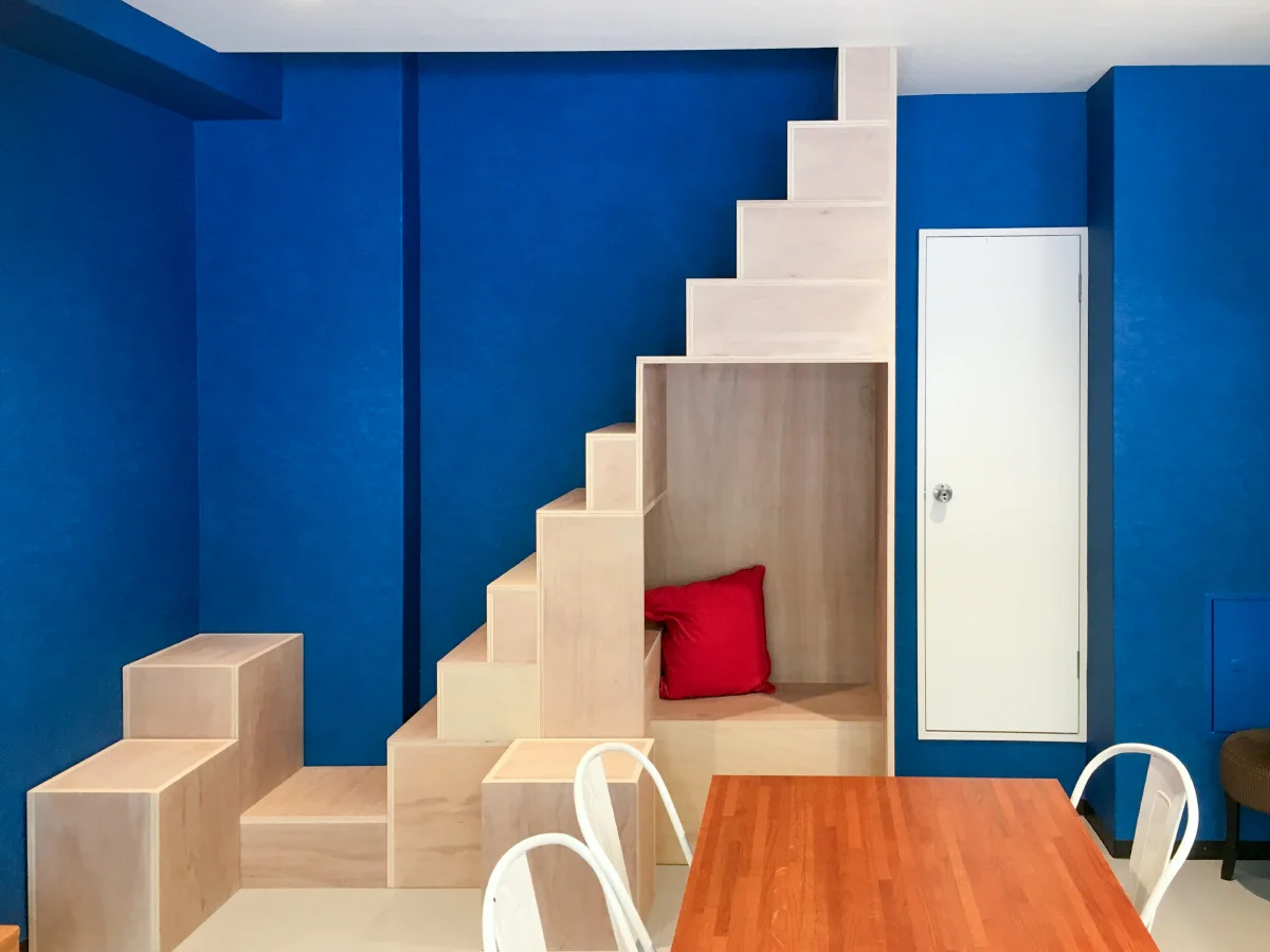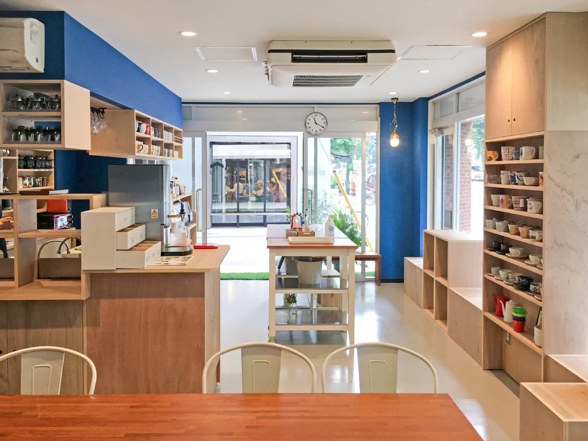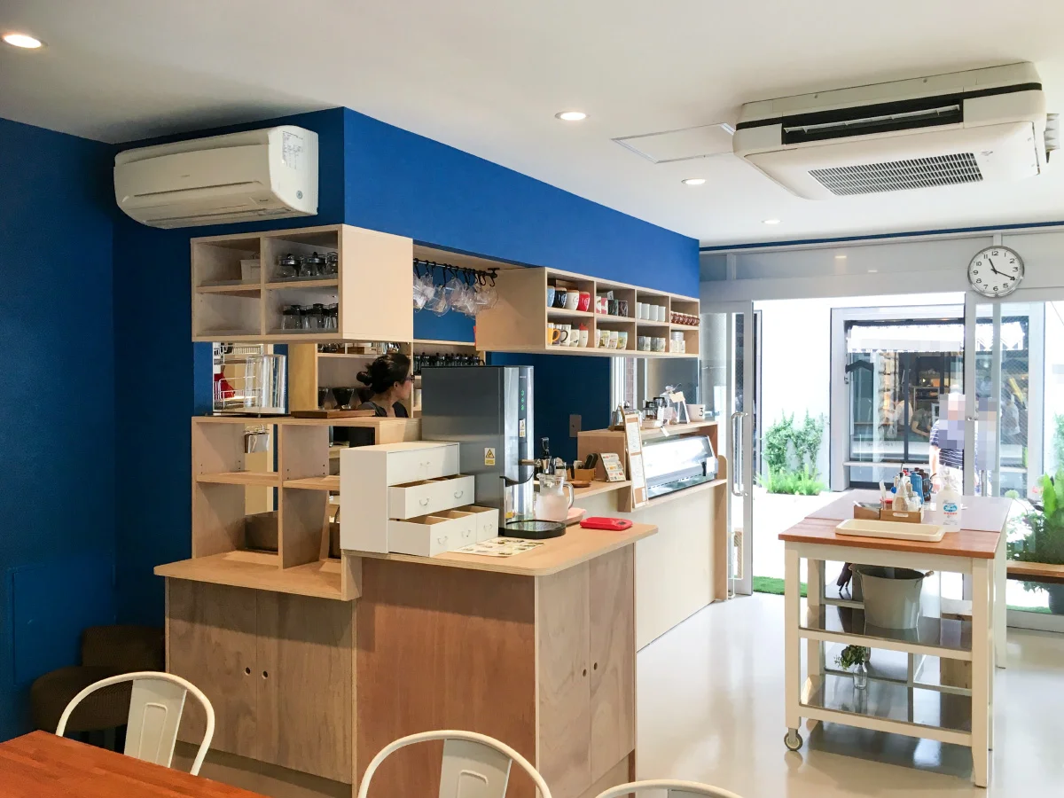 既存のお客様から店舗の移転に伴う、内装工事のご依頼をいただきました。 青と木材の地を活かしたデザインで、施主様のこだわりをオーダーメイドの家具で実現。 スタイリッシュな空間を作り上げました。