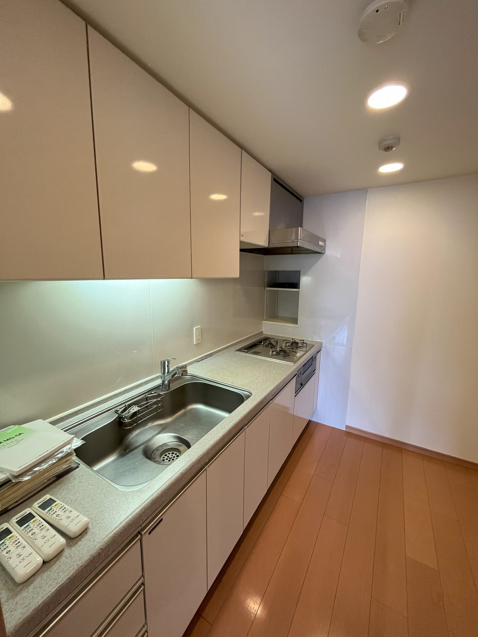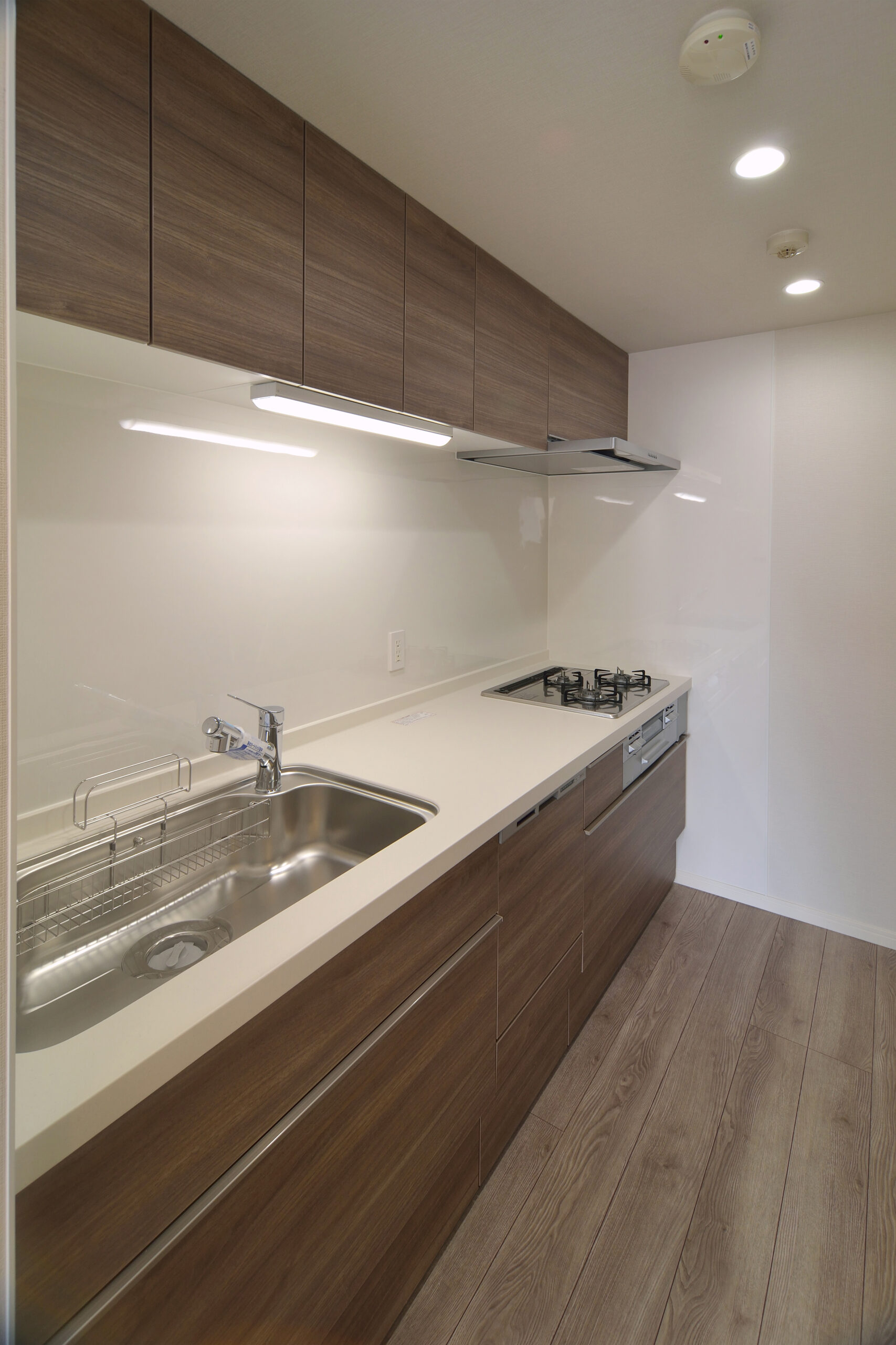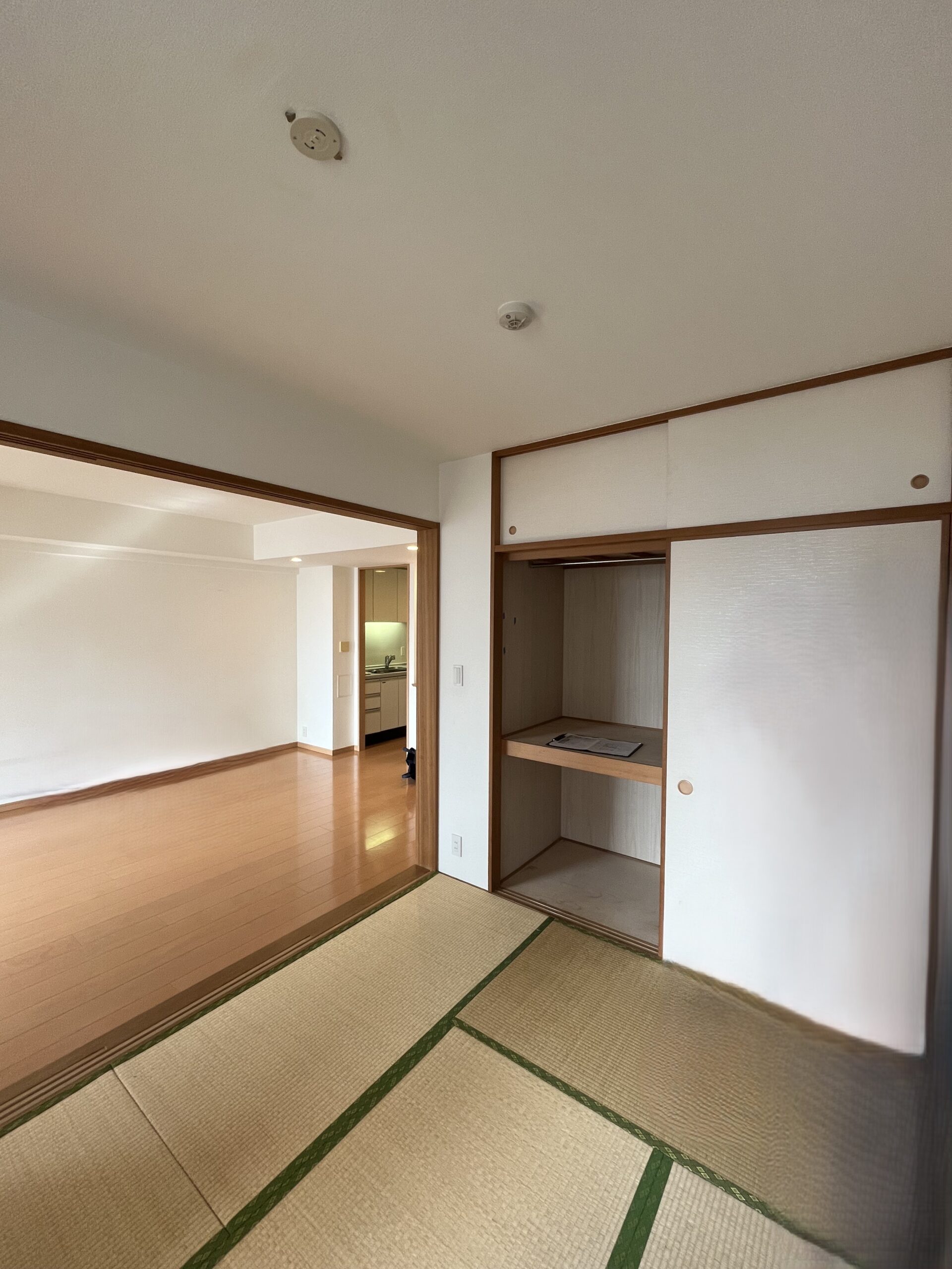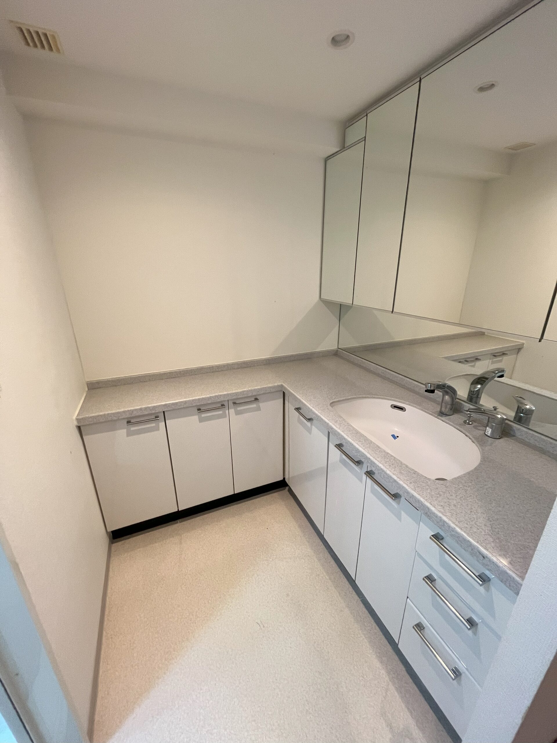 不動産会社様から販売用不動産のリフォーム工事のご依頼をいただきました。リビングと洋間に可動収納間仕切りを設置することにより、使い勝手に合わせ自由自在にリビングの大きさが調整する事のできるようにリノベーションしました。カラースキームは全体的にやわらかさと温もりをあわせもつグレージュベースのモダンテイストで統一しました。