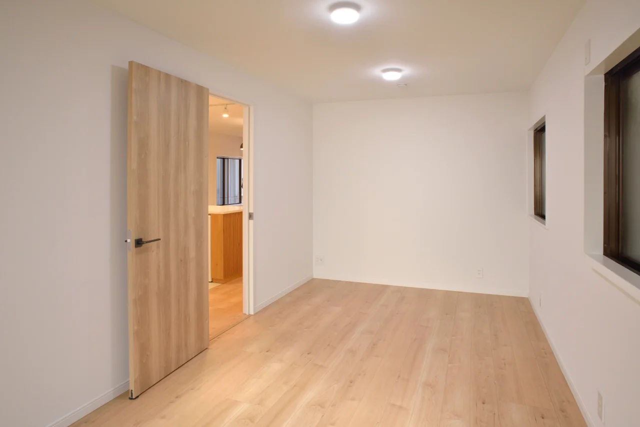作業場兼ご自宅の3階をリノベーション。息子様ご家族と暮らしたいという施主様の希望を叶えました。施主様ご家族と一緒にプラン・デザインを考え、フルリノベーションを行いました。 家具職人である施主様の造り付け家具を要所要所に 設置し、あたたかみのある素敵な空間に変身しました。