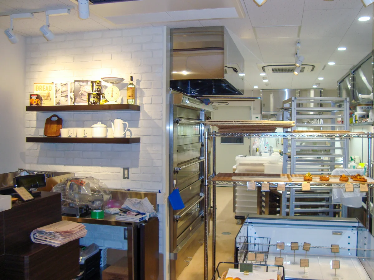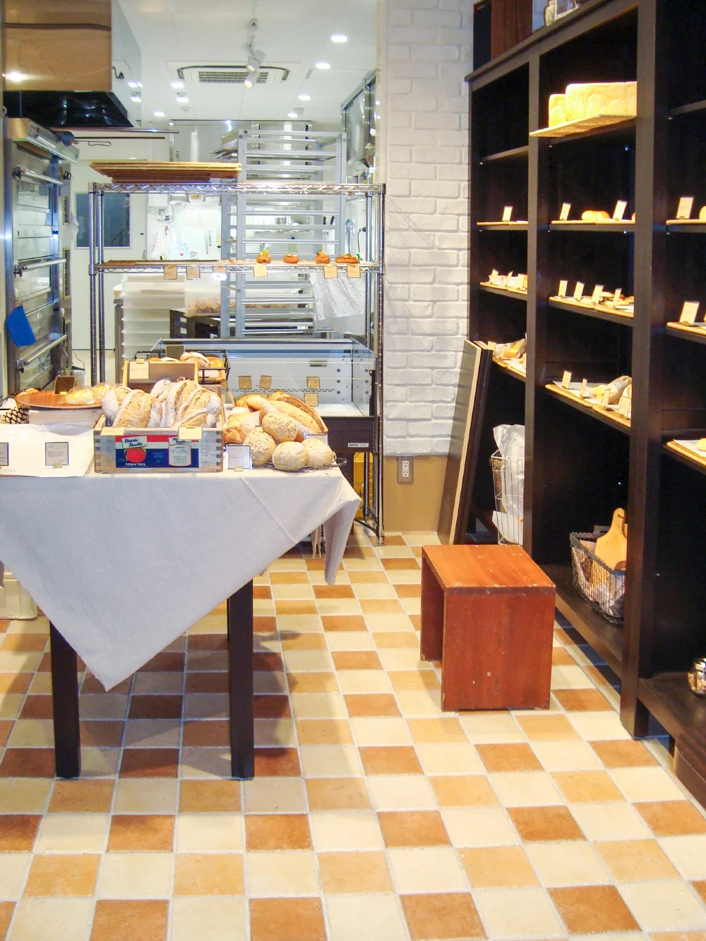 店舗専門の設計士とコラボ。店舗カラーのグリーンを基調とした温かみのある内装デザインに。こだわりは、床に店名を施したモザイクタイルです。