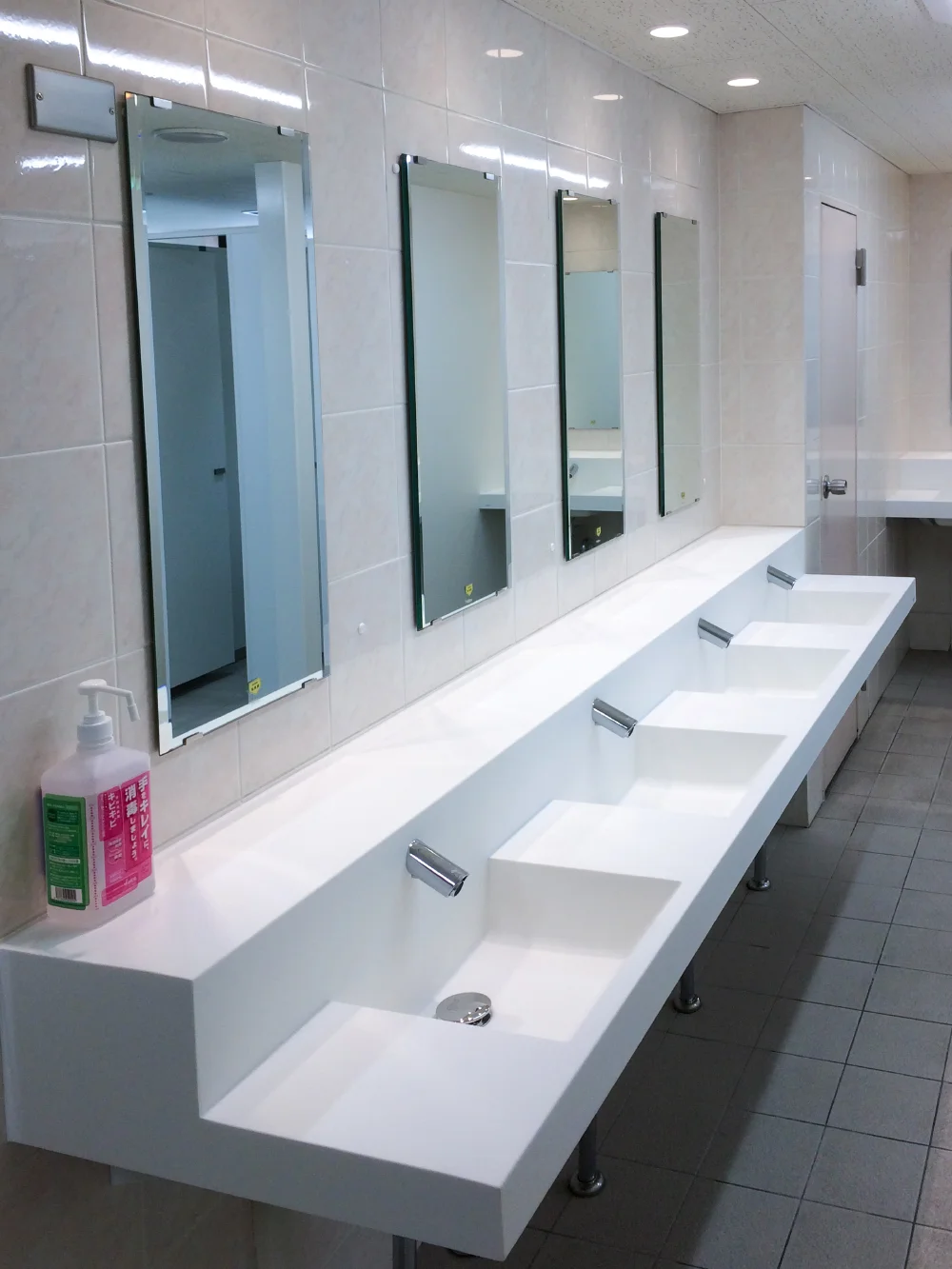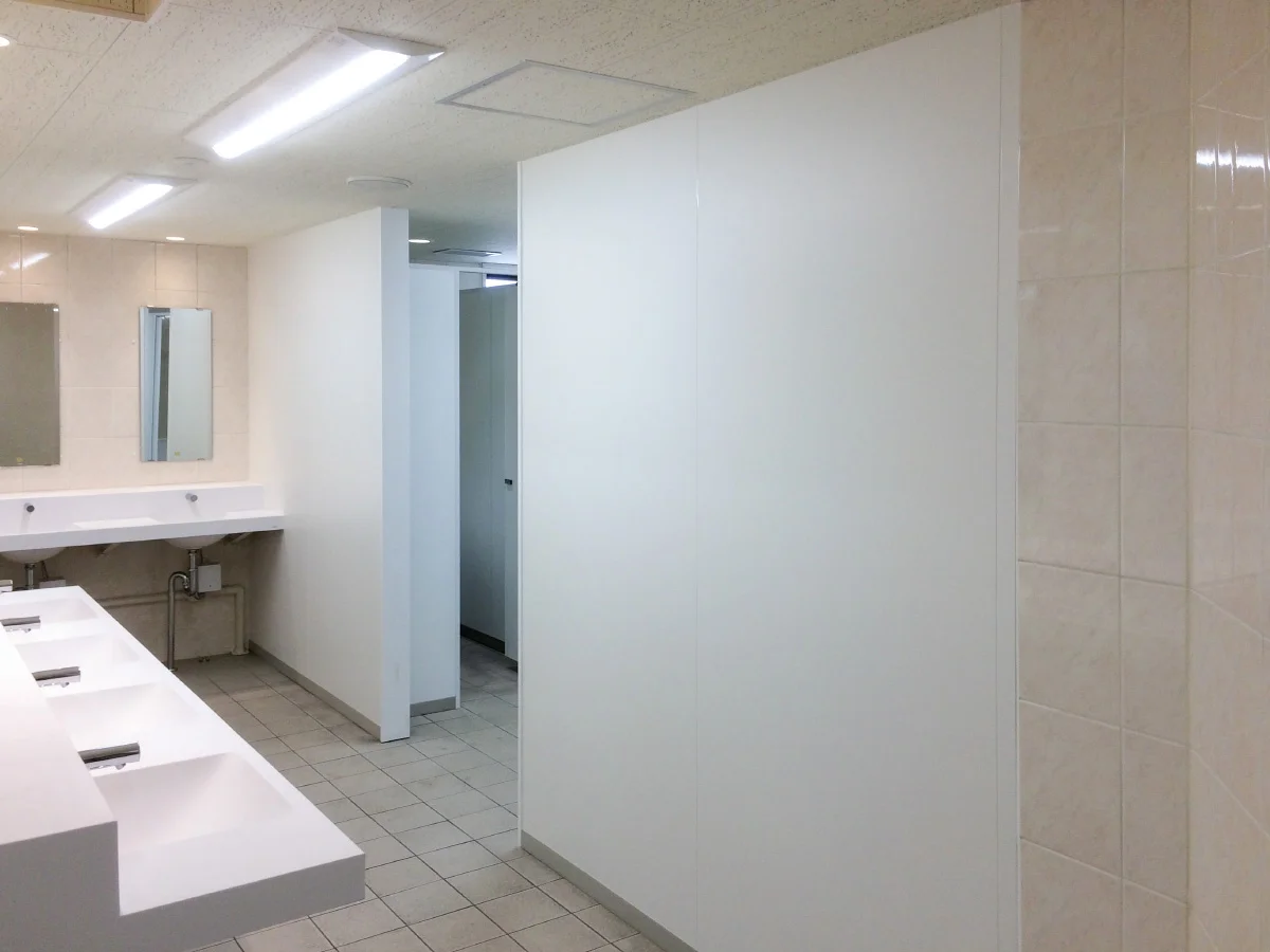 特 徴 校舎の築年経過に伴い、各施設の更新依頼。トイレの全面リニューアル、体育館・教室の改修、防水工事、外壁修繕工事、教壇の製作等、多岐にわたる工事をお手伝いしました。 お客様の予算と生徒の利便性を考慮した工事をご提案しました。