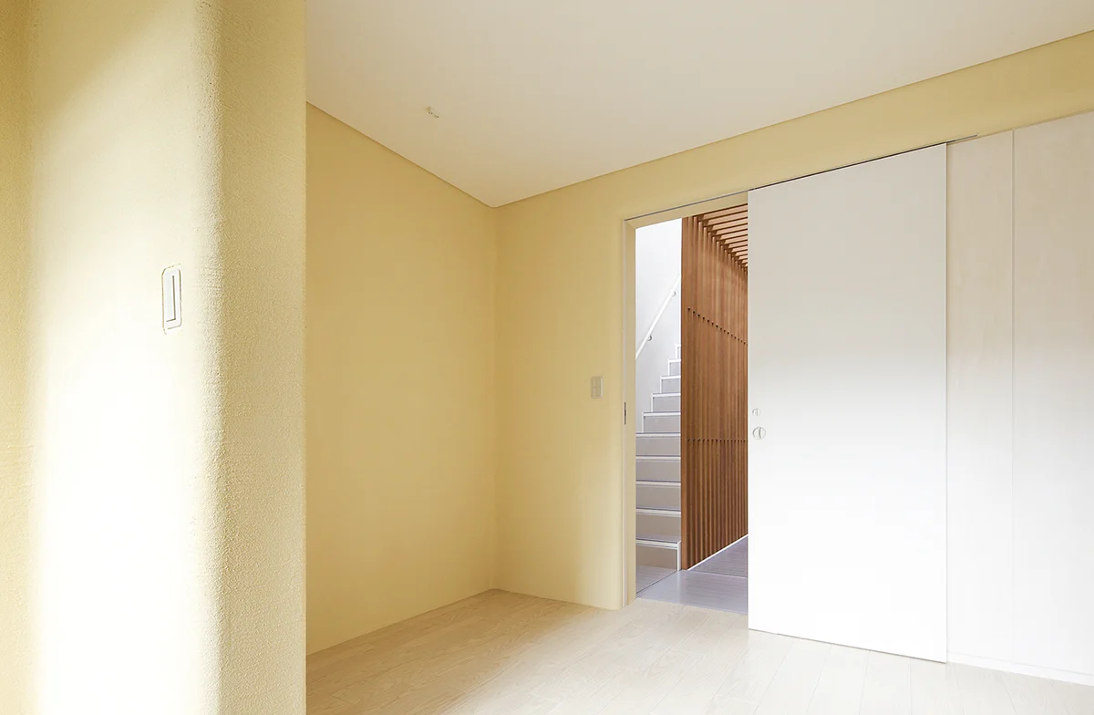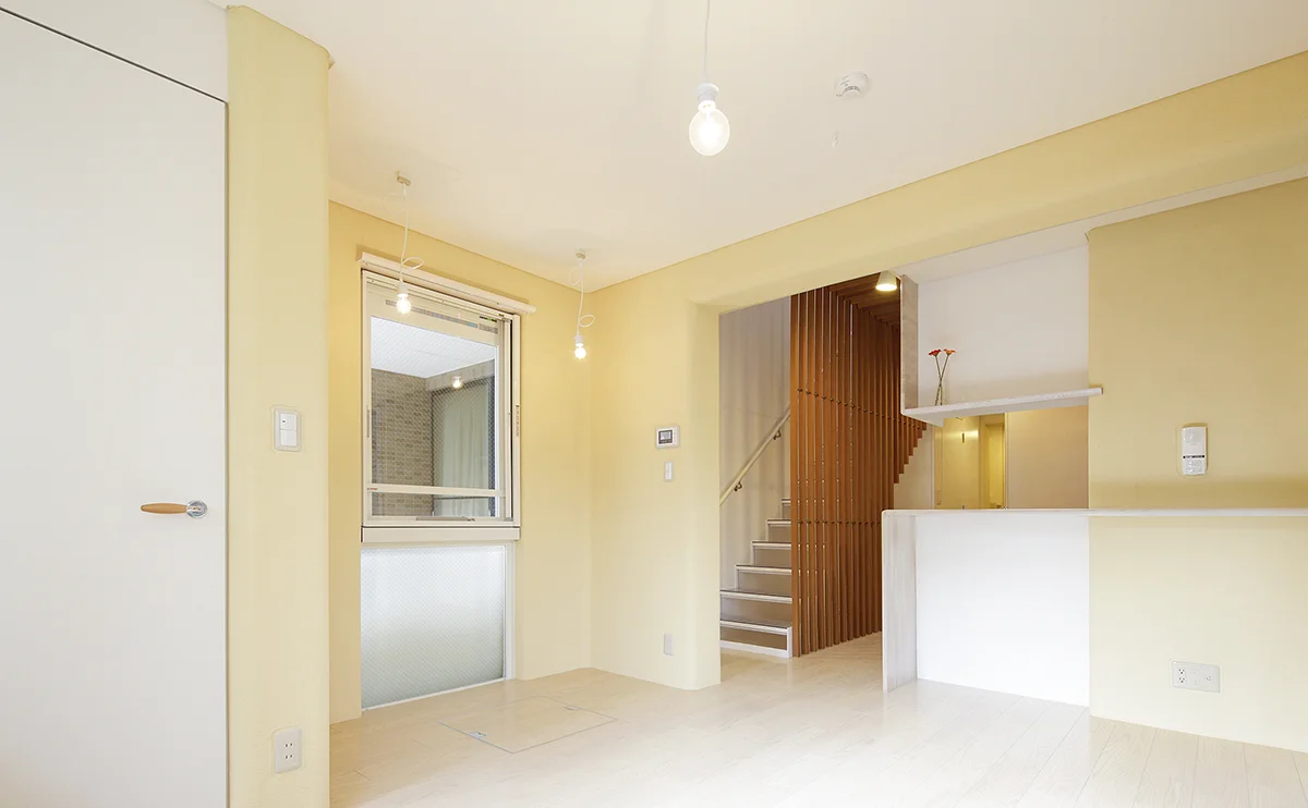 スケルトン階段やルーバーを採用することで、風通しの良さと採光を確保。明るく開放的な室内を設計士と共に再現しました。黄色を基調としたあたたく、可愛らしいご自宅になりました。