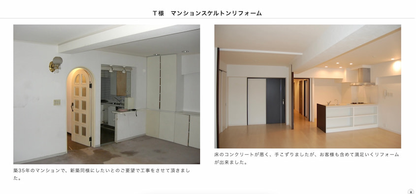 マンションリフォームの施工実績としては、広尾ガーデンヒルズ・なぎさニュータウン・ファミール浜園などがあります。