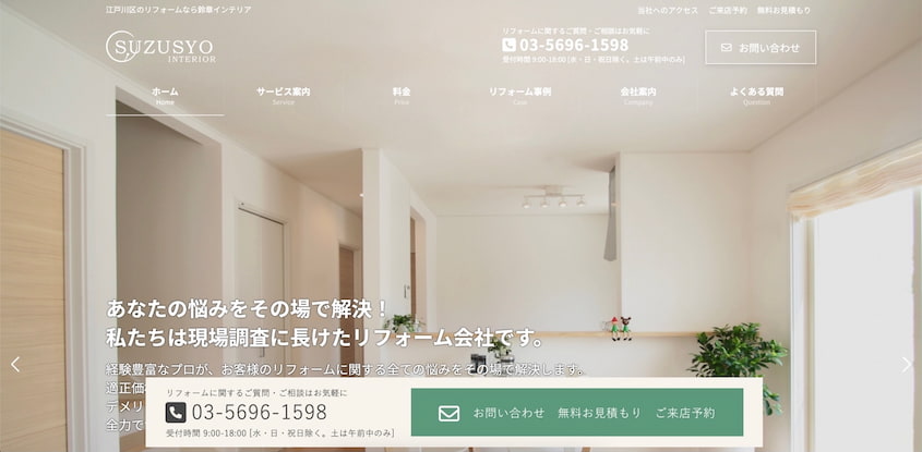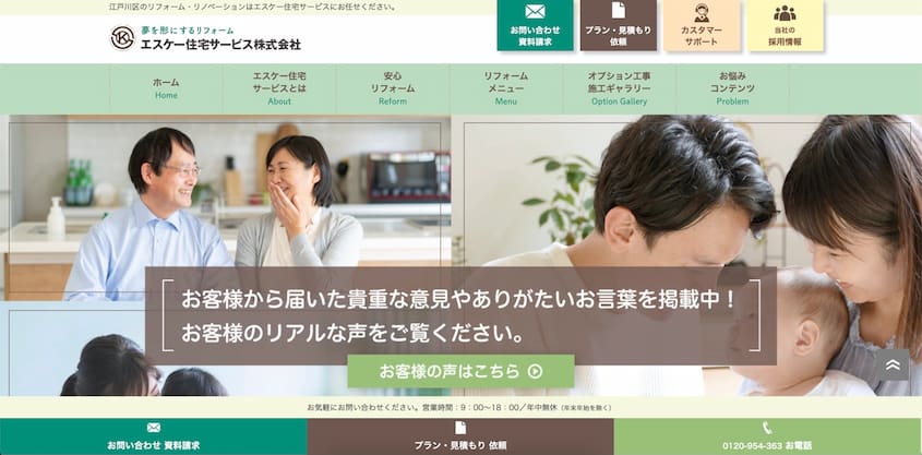 一方で、ホームページには、リフォームに関する情報が掲載されていないため、他社と比較する際には、電話またはメールで問い合わせる必要があります。