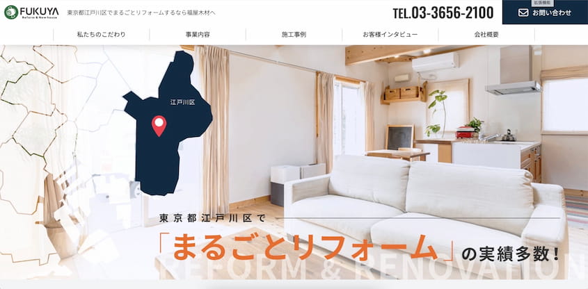 特に、福屋木材では、近郊地域に特化したサービスに力を入れていて、会社から半径20km圏内(江戸川区)を中心に、リフォーム事業を請け負っています。